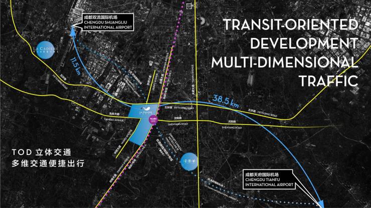 从这儿乘坐 19 号线 分钟抵达双流世界机场,30 分钟抵达天府世界机场。众所周知,成都和北京是全国仅有的两座双 4F 机场的城市。 5 号线现已注册,从这儿乘坐地铁仅 6 站能够抵达高新区锦城湖。